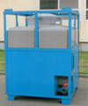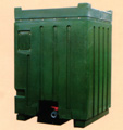 当時の1トンコンテナータンクは、内袋仕様を前提に作られていなかったため、排出口は横出でした。
